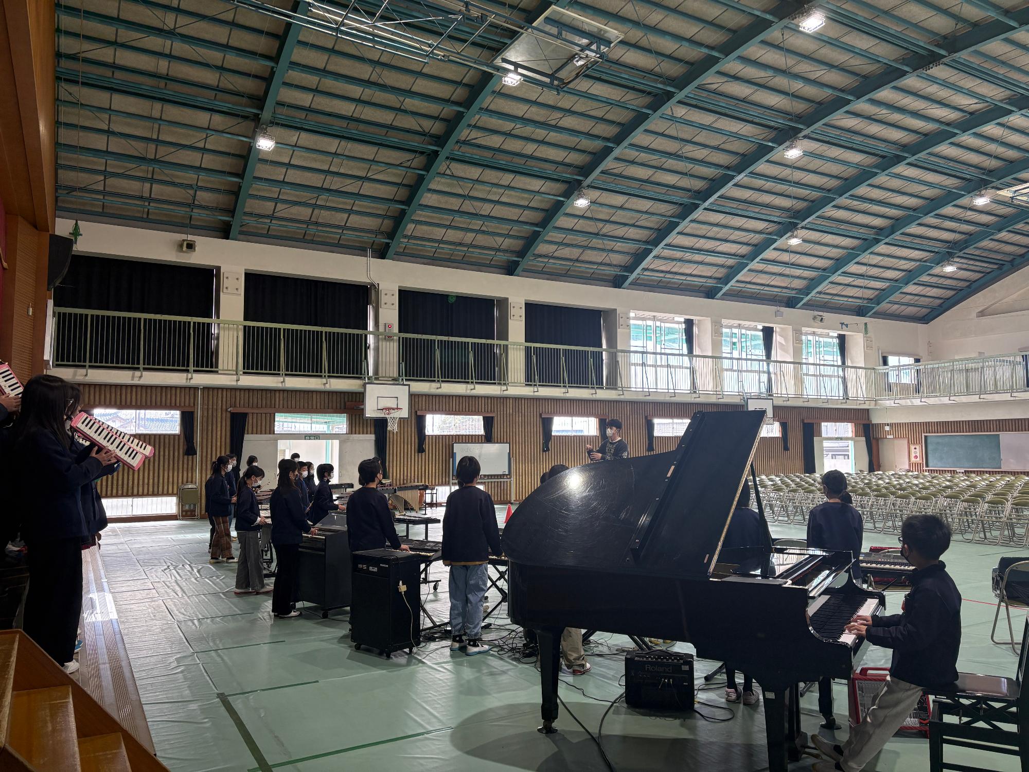 みんなで力を合わせて、合唱「君をのせて」合奏「怪獣の花唄」を練習しています。