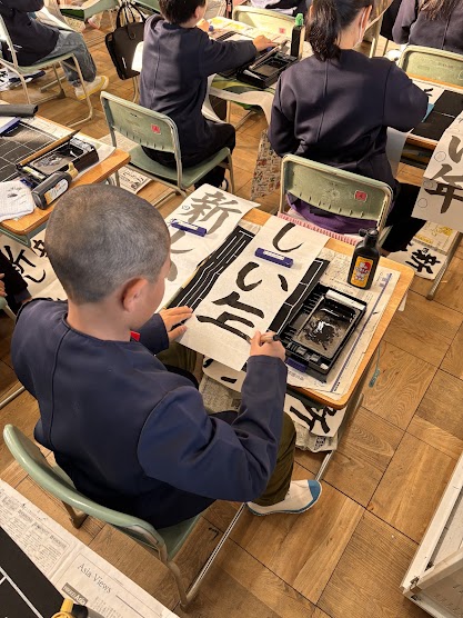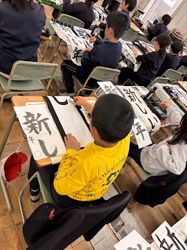 冬休みに向けて、年賀状の学習と書き初めの練習を行いました。