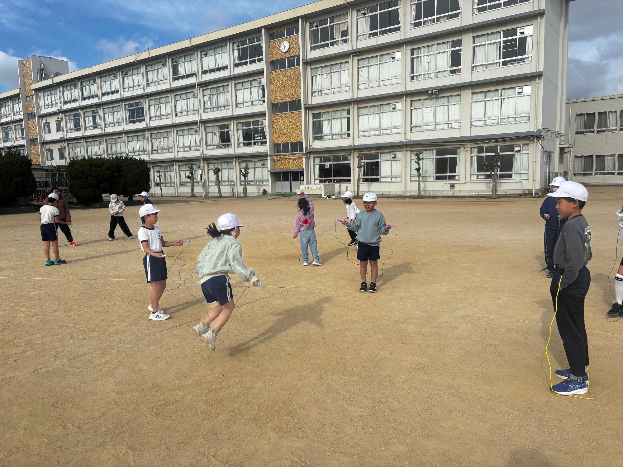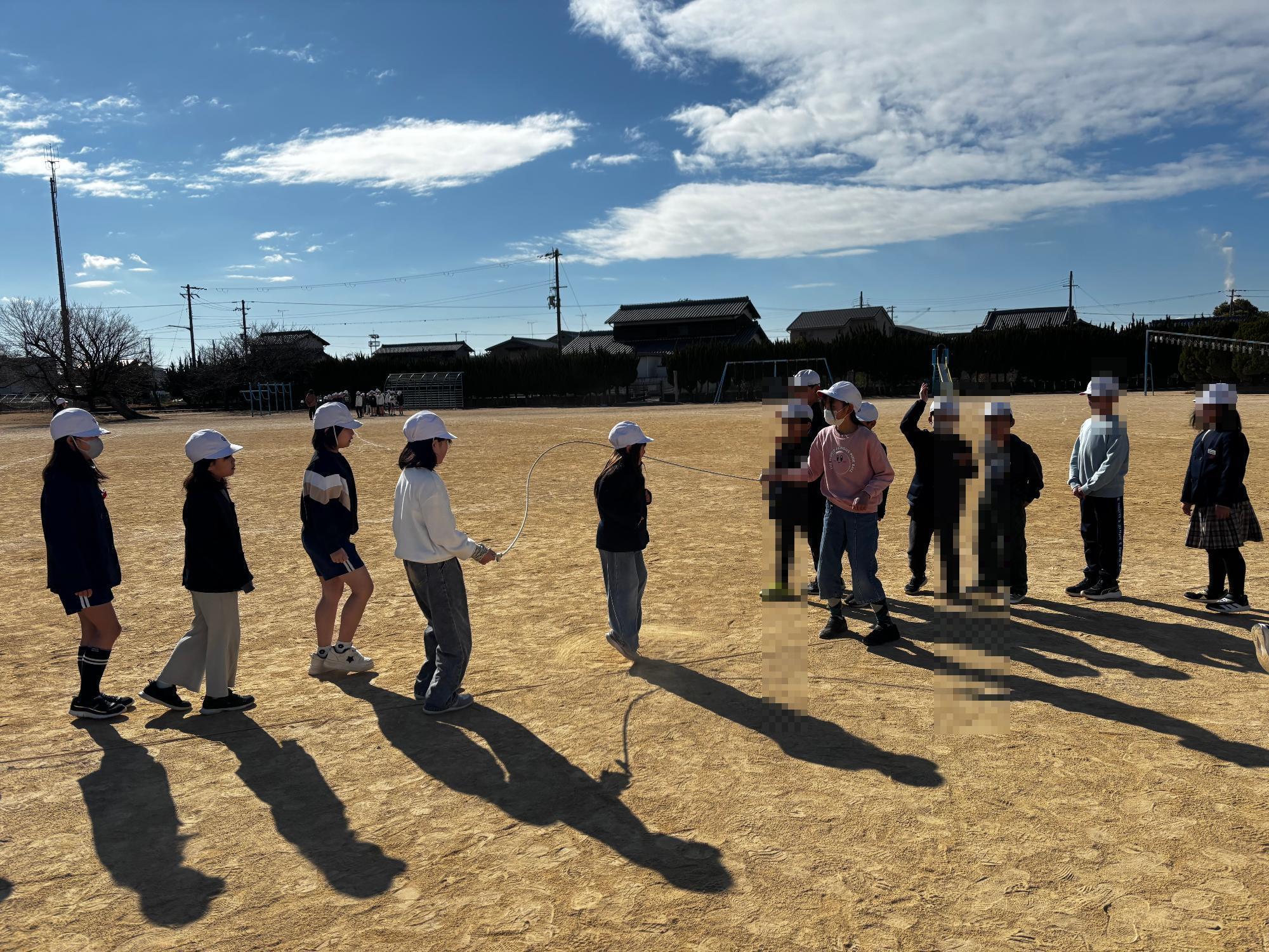 4年生のお兄さん・お姉さんに難しいなわとびの技を教えてもらいました。