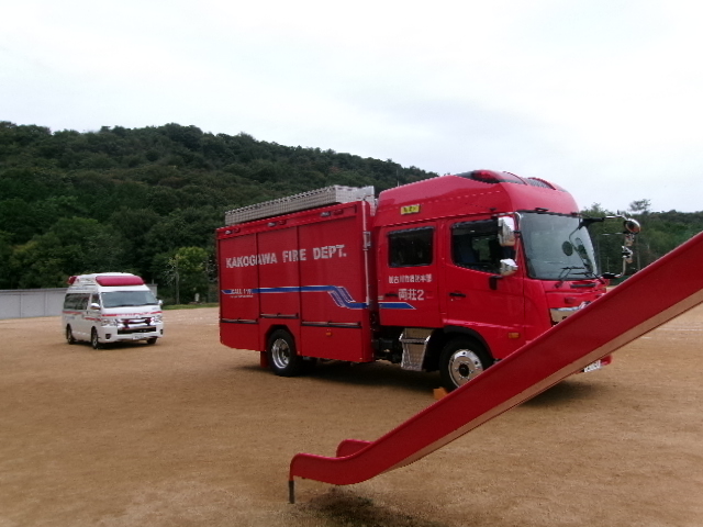その後、雨もまだ大丈夫そうだったので、外へ出てリーダータイム。昨日、入所式とお弁当を食べるはずだった芝生の広場で、「警ドロ」や「鬼ごっこ」を、リーダーや先生と一緒に楽しみました。