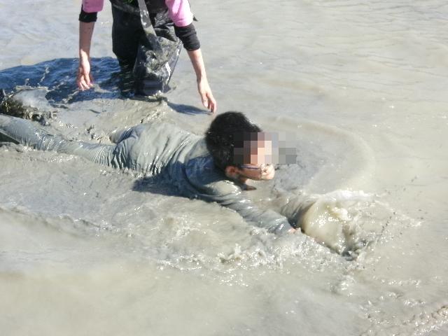 朝ご飯もしっかり食べ、午前中は、お楽しみのキャニオニング。ウェットスーツの着用に手こずっていましたが、何とか準備完了。岩から岩へと川を登りながら、ポイントに到着すると、リーダーさんの指示のもと、飛び込んだり、流されたり、水に浮かんだり…とても楽しそうでした。