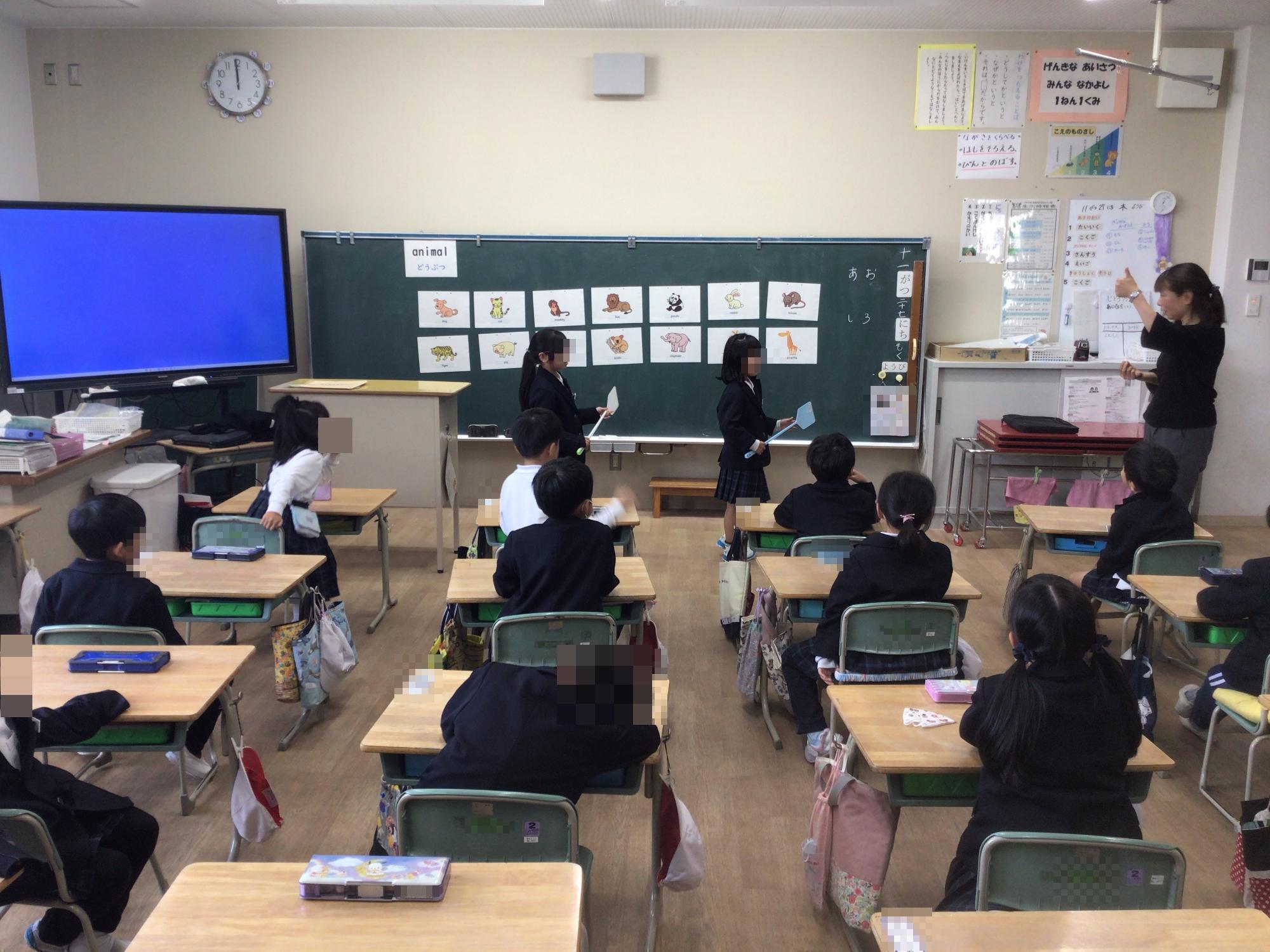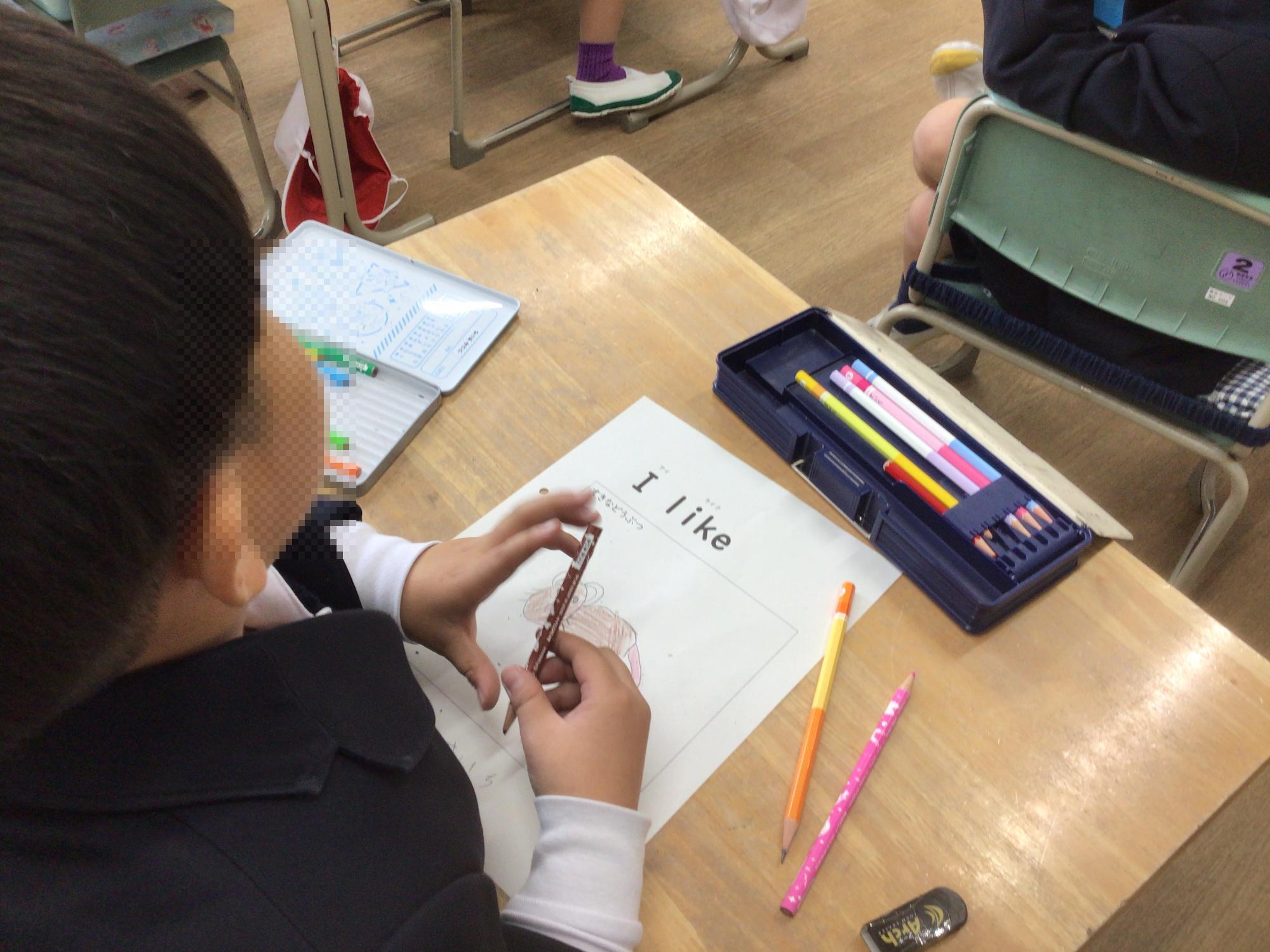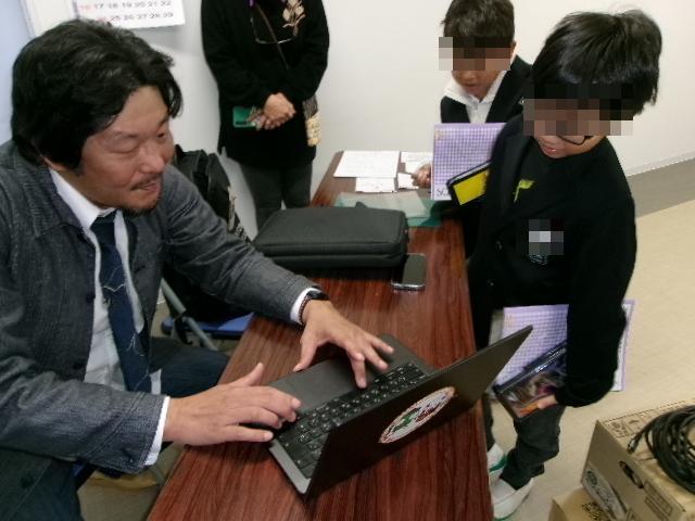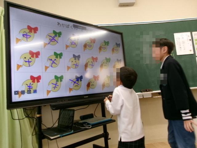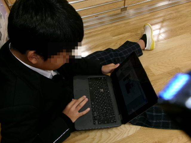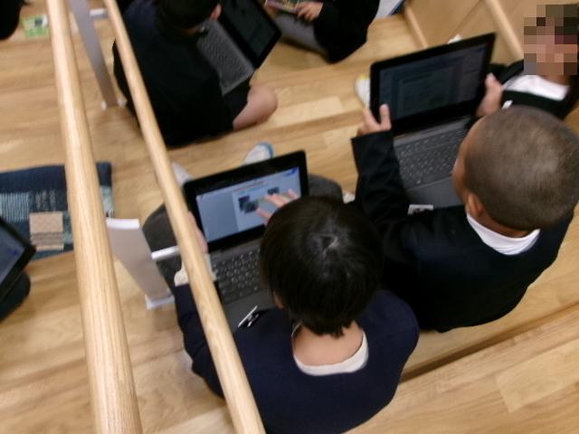 自分たちで考えた言葉を翻訳ソフトで英語に。。。3年生でも思いを自由に伝えることができます!!