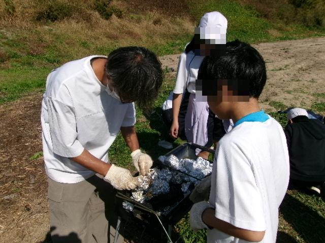 午前の天気は、晴れ。朝の集い、朝食のカートンドッグ、昼食の野外炊さんカレー作り・・・と時間通りに進んでいきました。カレー作りでのごはんは、空き缶を飯盒代わりに使いました。防災的にも活用できる炊き方です。カレー作りは、みんなで手分けして、野菜を切っていきました。お家でもお手伝いしている子どもがさり気なくアドバイスする姿が微笑ましかったです!出来上がりもDelicious。一人1合分のお米を想定してありましたが、ほとんどの子どもが完食していました。体調がよい表れでしょう!