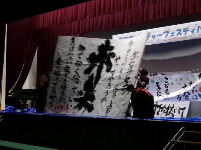 両荘スカイランタンまつりのオープニングで、文化(書道)部が書道パフォーマンスをしました。昨日まで、期末テストだったので、カルチャーフェスティバルで演じたものを少しアレンジして演じていました。