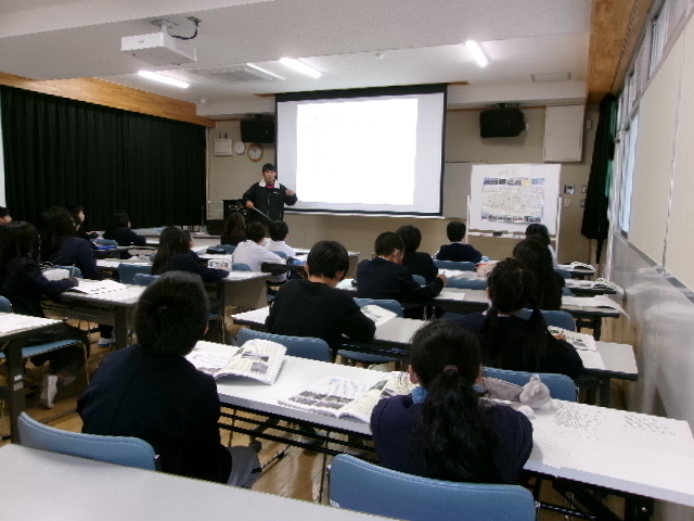 今回の授業のねらいは、第2弾として「島田叡沖縄県知事の行動から戦争の構造をとらえる」ことです。沖縄・沖縄戦についてのお話のあと、「住民たちはどのように戦争に巻きこまれていったのだろう」について、戦争を体験した方の証言をとおして考えていきました。兵庫出身の島田知事は、県民の命を最優先に考える立場であると同時に、政府の役人であるがゆえ、軍からの指示や考えとの間で、まさしく簡単には答えのでない判断をしなければならなかったと推察できます。授業では、住民からの見方に加え、島田知事の言葉や判断にフォーカスし、戦争の醜さ・愚かさ、そして、多くの矛盾などを感じることができました。