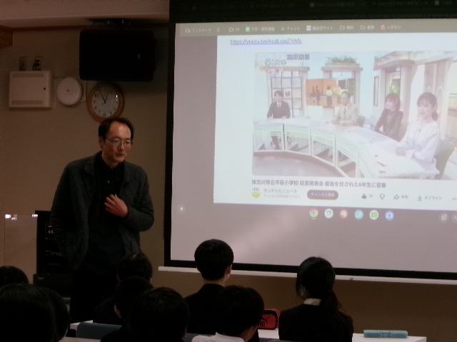 この「両荘みらい学園エトセトラ R7 1学期」の4月25日で取り上げた福中さんがGT(ゲストティーチャー)として、またまた本校に来てくださいました。あのときは、「沖縄ってどんなところ?」をテーマに、自然・風土・文化から沖縄戦・基地問題等についてお話してくださいました。