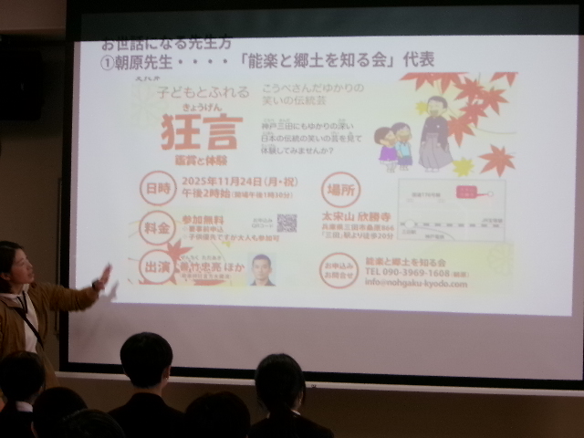 2月に6年生が発表する狂言。その学習が今日から始まりました。狂言は、平荘小学校で20年余り前から学習に取り入れてきた歴史ある学習です。国語、図工、社会、総合的な学習の時間など複数の教科をまたがる厚みのある教材です。今日は、オリエンテーション的な授業で、両荘地区における狂言学習の歴史や背景を理解したうえで、狂言学習を意欲的に取り組めるようにします。