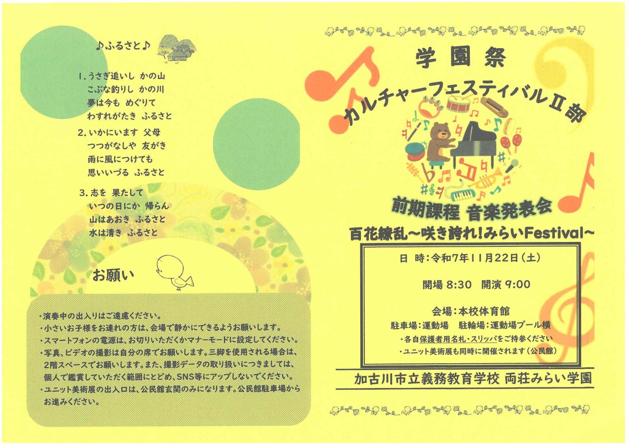 カルチャーフェスティバル2部 ~ 前期課程音楽会 ~ 11月22日