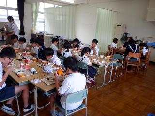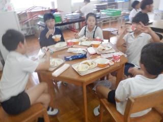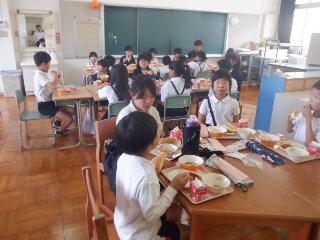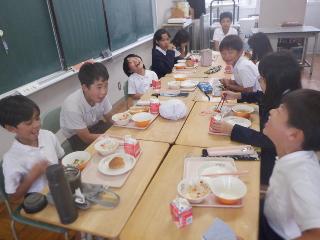 ぽかぽかルームで交流給食がスタートしてすでにひと月半が過ぎました。今ではすっかり定着しています。毎日いろんな学年の組み合わせ(曜日で固定)で食べています。お話も弾み、笑顔で過ごしている子どもたちが目立っています。11月に入ると組み合わせを少し変更していきたいと思います。楽しく食べられているので食も進むようです。今日は2年と5年の組み合わせ。お互いにのびのびと給食を楽しんでいました。おかげで残菜が少なくなりました。大勢で食べられるのはやっぱりいいですね。