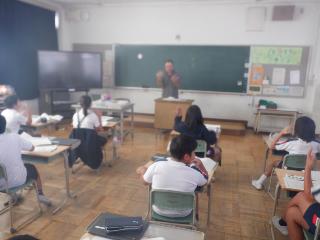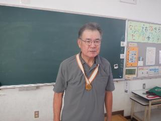 今日が4回目でした。最初は前田さんと都道府県名の手話を練習しました。その後は質問コーナーということで、今日は主に前田さんの子ども時代を尋ねる質問が中心でした。「いつ頃手話を覚えられたのか?」「どのように手話を学んでいったのか?」「子どもの頃、よくあそんだあそびは?」等々。子どもの頃に遊びながら覚えていったことやサッカーや野球をして遊んていたことを言われました。そのなかで17歳の時に東京パラリンピック(1964年)に陸上100mで出場したことを教えてくださり、その時のメダルも見せてくださいました。最後にみんなでお礼の言葉を伝え、学習の感想文を手渡しました。
