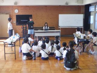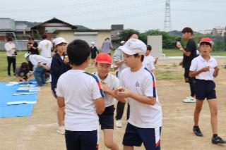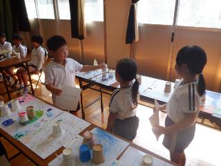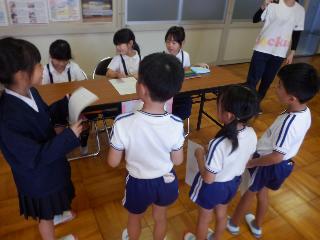 本日、しかたこども園の年長組さんが本校にやって来て1・2年生と交流会をもちました。2年生(12名)が主催する「おもちゃランドへようこそ!」の催しに参加しました。2年生がおもちゃのお店を出し、1年生6名がこども園児をサポートしながらグループごとにお店をまわりました。2年生たちは、この日のために手作りおもちゃをつくり、お店屋さんとしての手順も考え、準備してきました。こども園児のおかげで今日は大人数、大いに盛り上がっていました。生き生きとやり甲斐をもってこども園児を楽しませていました。迷路、射的、コロコロ、弓矢…「すっごく楽しんでくれたからうれしかった」「いっぱい来てくれてもりあがった」「うまいことできた!」児童たちにとって、手ごたえ充分の交流会になりました。来年度、本校に入学予定の園児も数名います。待っているからね。