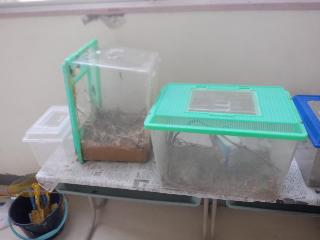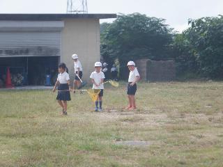 業間休み、このところ1年生たちはカマキリやバッタの採集に夢中になっています。網をもってサルビア広場を駆け回っています。適度に草が繁っており、あちこちでバッタたちが跳んでいます。つぎつぎと捕まえられることもあって一大ブームになっています。教室横の廊下には飼育ケースがあり、10cmを超えるカマキリが複数、緑色もいれば褐色のものも。その横のケースにはトノサマバッタやショウリョウバッタがびっしりといます。これらも色や大きさは様々です。土や草、水分も入れてみんなで観察しているようです。今日の5校時は生活科で1年生みんなでカエルを探していました。生き物たくさんの学校っていいですね。