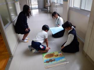 昨日、5・6年生が明日から始まる校内絵画展の準備に取り組みました。25日の音楽会まで1F廊下に全校生の絵画を展示しています。学校を代表して出展している児童の作品は除いています。高学年たちが、テキパキと全員分の絵画を順番に展示用のナイロンケースに名前札と共に入れていきました。みんなで取り組むとあっという間に終了しました。25日の音楽会にご来校の際は、是非絵画展もご覧ください。