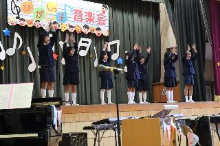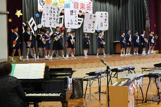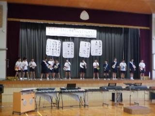 25日(土曜日)、たくさんの保護者の皆様、地域の皆様にお越しいただきました。多くの方々を前にして、子どもたちはこれまでの練習での積み上げを発揮して、表現することができました。見てもらえるということで、もちろん緊張したことと思いますが、表現できる「喜び」や表現できたという「手ごたえ」を味わうことができたように思います。10月に入ってから3週間余り、体育館から聞こえてくる歌声や演奏に日々ふれていると、子どもたちの「努力」や「音楽を楽しむ気持ち」までもがしっかりと伝わってきていました。他校に比べればかなりの少人数です。例えば6年生はわずか7名、それで演奏しました。楽器は人数と同じ7種類、一人ひとりの役割は重大です。でも、とってもパワフルな演奏ができていました。どの学年にも言えることですが、少ない人数だからこそ、人任せにはできません。練習を通して、仲間と日々「心を合わせる」こと、「協力する」ことに取り組んできました。仲間と息を合わせて一つの音楽を創りあげてきたこの経験と、仲間とともに勇気をもって大勢の前で表現できたという自信を、これからの学校生活につなげてほしいと思います。