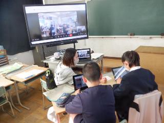 3年生は、国語のグループ学習をしました。事前・事後のリモートを含め、この1時間だけでなく計画的に取り組みました。付箋に書いてで意見を出し合いながら本校だけではできない本格的なグループ学習ができました。