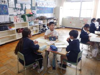 昨日の朝の時間、来週に予定している志方西小との授業交流に向けて、3年生の児童同志がリモートで打合せをしました。10月28日の3校時、国語の授業を一緒に取り組みます。「話し合い」の単元で、話し合いの進め方を学んでいきます。その際、司会役、記録書係、時間係がいて、もちろん意見を言う人もいます。この打ち合わせでで、グループごとに相談して、役割を決めました。本校の2人は別々のグループに入っており、グループごとのリモートにつなぎなおして相談しました。