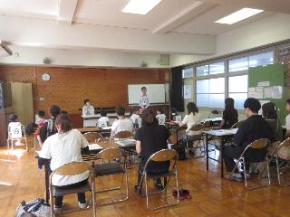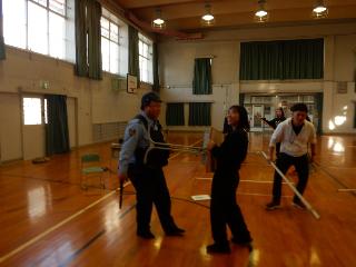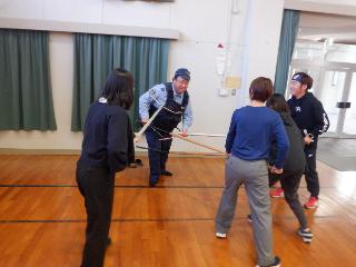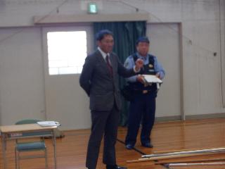 昨日の放課後、加古川警察署生活安全課から西山様、志方東駐在所の西田様を講師にお迎えし、全職員で不審者対応の防犯訓練を行いました。「まさか、そんなことはないやろ」ではなく、想定外のことを想定しておくこと、そしていざという時に動くことができなければなりません。全体で、不審者が侵入したときの学校の対応(放送、役割分担、動き)を確認したのち、実際に「さすまたの使い方」や「護身術」の講習を受けました。具体的にどのように使うかをわかりやすく指導してくださいました。対応については、何といっても子どもの安全を第一に考えて動いていことをいろんな視点からご教示いただきました。この訓練を通して、危機意識を一層高めることができました。