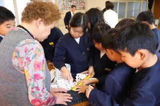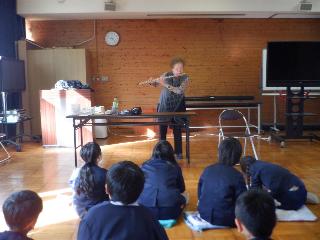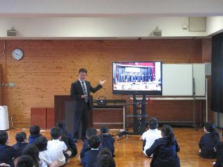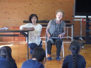 本日、3・4年生の総合的な学習(福祉)でゲストをお招きしました。社会福祉協議会のお世話で、敏森くみ子さんにお越しいただきました。ガイドとして成田さん、福祉協議会から前川さんにも来ていただきました。敏森さんの生い立ち、暮らしのようす、多彩な趣味、支援グッズ、実演(ペットボトルお茶をコップに移して飲む、フルート、手品)…などなど、短い時間にたくさんの要素も盛り込まれてわかりやすく教えてくださいました。また、前もってお伝えしていた子どもたちからの質問にもすべて答えてくださいました。目の前の敏森さんの姿から実感できることがたくさんあり、子どもたちにとっては大変勉強になりました。