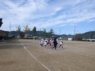 11月20日のマラソン大会に向けて、今日から業間休みの「かけ足」がスタートしました。準備体操をしてから、まず集団走(2分)→自由走(3分)→自由走(3分)をします。徐々にペースアップができ、自由走では各自が目指すスピードでチャレンジできています。無駄なくしっかりと積み上げられるメニューになっていますので、これから大会までの2週間あまり、心と体を鍛えてほしいと願っています。また、体育の時間を中心に今年度はタイムトライヤルをどんどんしていきます。特別に1周250mコースを設定しています。1・2年は1000m、3年以上は1500mです。