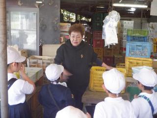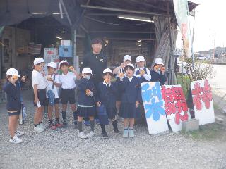 2回目の町探検で近くの「くだものやさん」におじゃましました。とってもお元気な店員さんがおられインタビューをしました。「今は何が人気ですか」「お店の仕事ではどんなことをされていますか」「何年されていますか」…。いろいろと質問をしました。すべてに元気な声で答えていただきました。ふだんよく買いに来ている子もいて、店員さんに声をかけてもらっていました。今はミカンが大人気、いろんな種類が売られていました。そのミカンをお土産にいただき、子どもたとは大喜びでした。