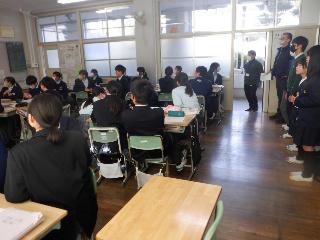 先週金曜日(1月30日)の午後、志方中学校でオープンジュニアハイスクールと保護者入学説明会が行われ、志方中に進学する6年生たちが参加しました。3つの小学校の6年生が顔を合わせ、授業参観(4つの授業を学校ごとに回る)や生徒会役員による学校紹介(授業・部活等々)、そして部活動見学(保護者と一緒に回る)を行いました。中学校という場所に入るだけで気持ちが引き締まります。先輩たちがとても大きく見えます。小学校とはちがう大人の世界にいよいよ仲間入りするのだな、そう実感している様子でした。あと2か月で入学します。この体験入学をきっかけに「こころの準備」がこれまで以上に進みそうです。