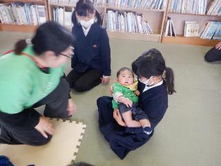 本日、2年生が「赤ちゃん先生」に取り組みました。4組の赤ちゃん&お母さんにお越しいただきました。赤ちゃんがいるだけで誰もがやさしくなれます。かわいい赤ちゃんたちを前にすると児童たちの「表情」も「声」も「ふるまい」もすべてが愛にあふれます。赤ちゃんとのふれあい体験では「かわいい!」の連続でした。また、お母さんたちから赤ちゃんが生まれる前、そして生まれてからのお話をたっぷりと聴かせてもらいました。こんなにも大切に育てられていることを自分に置きかえてとらえることができました。自分たちにもこんな時代があり、ここまで大きくなってきたことを改めて実感することができました。