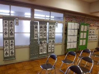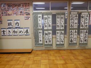 只今、多目的室で「校内書き初め展」をしております。また図工作品を教室、廊下等で展示(掲示)しております。明日の参観日にご覧ください。最後の参観日ということで各学年、個々の発表が中心となる授業を予定しております。参観、お世話になります。