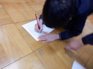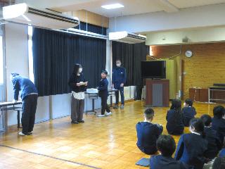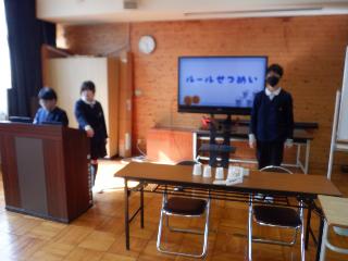 来週は、月曜日に児童会役員立候補者演説会、火曜日に児童会主催「感謝・お礼の会」を行います。今週の業間休みは、それに向けて会場となる多目的室で練習が続きました。今日は、「感謝・お礼の会」で地域学校応援団の方々(10名以上)にプレゼントを渡す代表児童が集まり、動きの確認やリハーサルをしました。また、その会の進行やクイズ大会の進め方についても、現役員たちがこの1~2週間よく練習していました。また選挙に立候補した児童たちは、原稿をつくって演説会の練習を繰り返しました。せっかくのchanceです。どちらの行事も同じやるならカッコよく。できたこと、がんばれたことが自信になるように、それをめざして取り組んでいます。