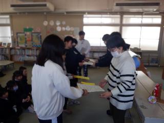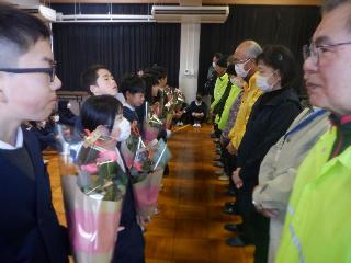 小規模校ゆえにそのお力は欠かせません。この会を通してお世話になったお礼を全校生で伝えました。まず、みんなでゲーム大会をして、ご一緒に楽しいひと時を過ごしました。その後、子どもたちからの「お花」と「お礼のメッセージカード」を手渡しました。これからもどうぞよろしくお願いいたします。