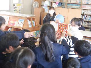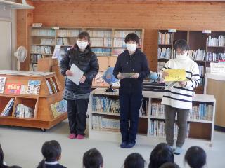 今日は今年度最後の図書ボランティアさんの読み聞かせの日でした。お昼休み、自由参加ですが、最後ということもあって1年生から6年生までほぼ全員が参加していました。今回もお1人ずつ、3冊の絵本を読んでいただきました。会の終了後、ボランティアさんへの1年間のお礼ということで、図書委員会の児童たちから、また低学年の児童たちからも3人それぞれの方へお手紙を渡しました。「いつも面白い本を読んでくださいました…全校生がわかる絵本を読んでくださいました‥これからもよろしくお願いします…」ぜひ次年度もお世話になりたいと思っています。