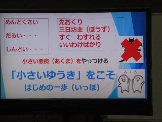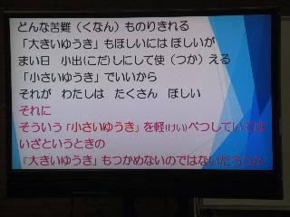 2月に入りました。今の学年もあと2か月、のこり少なくなってきました。昨日の月曜日の朝会では、校長より有名な教育者である東井義雄さんの「『小さいゆうき』をこそ」の詩をもとに話をしました。「しあげ」と「じゅんび」の3学期、「めんどくさい…、だるい…、しんどい…」ついつい楽な方に流されがちになる弱い心に打ち勝つ「小さいゆうき」を大切にして、よい締めくくりに向かって取り組んでいくことを伝えました。
