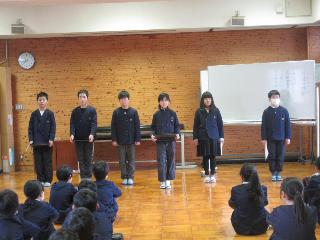 1/29に「選挙告示」があり、現役員(計画委員会)を務めた5名から、その役を通して学んだこと、成長できたこと等が語られました。それを受けて4・5年生から6名が立候補しました。「立会演説会」では、6名それぞれがみんなの前で堂々と演説を行いました。事前練習をたっぷりとこなした成果もでていました。内容も何をしたいのか、こんな学校をつくっていきたい等々、とても頼もしいものばかりが続きました。