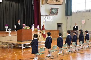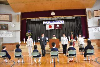 絶好の入学式日和となりました。桜が舞うなか、新入生を迎えることができました。式では在校生全員、保護者、地域ご来賓が見守っているなか、7名の新1年生たちがうれしそうに入場してきました。校長の話では、小学校生活のスタートにあたり、国語や算数といった勉強のほかにも、仲間と力を合わせることや助け合うことを通して「やさしい心」や「思いやりの心」をいっぱい育てていきましょう、ということを伝えました。新入生たちは顔をあげてしっかり話が聞けており、『おめでとう』や『元気に来てください!』の言葉がけに対しても、大きな声で返すことができていました。大勢の人たちにたっぷりと祝ってもらえた入学式になりました。