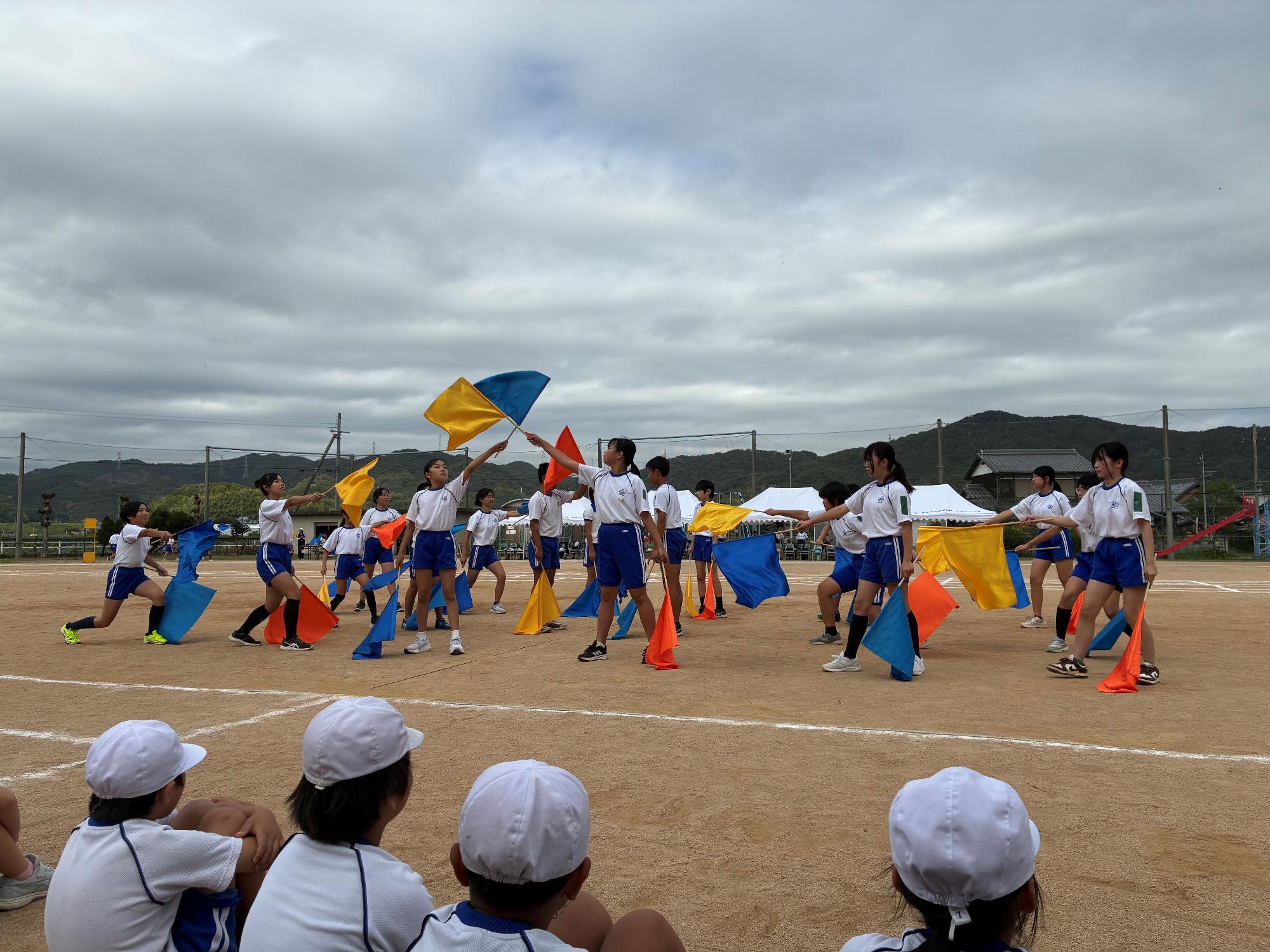 4・5・6年生の表現:大きなフラッグを両手に持ち、音楽に合わせて力強く旗を振るダイナミックな演技は、会場に感動を呼びました!