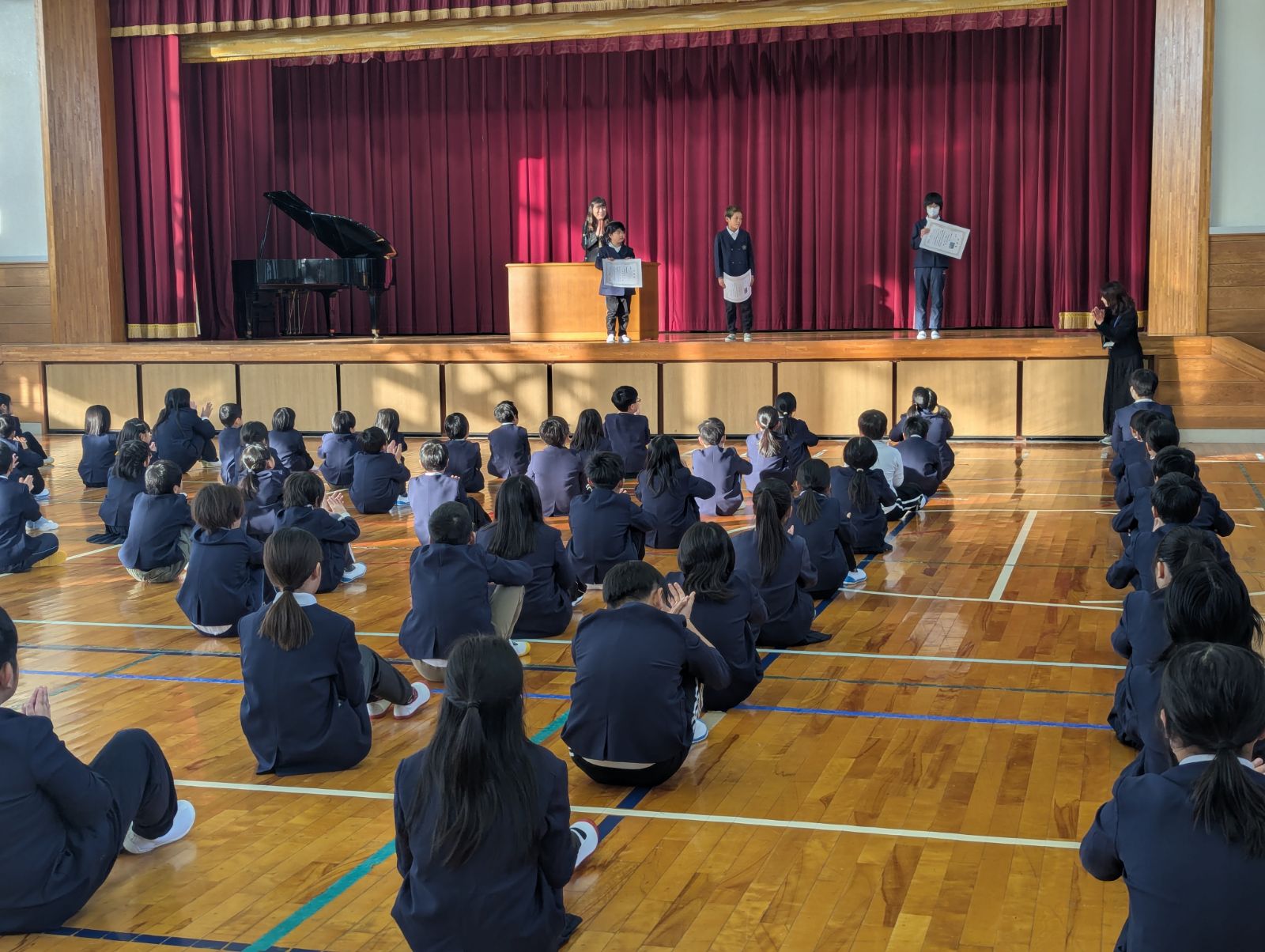 2年生から6年生まで、合わせて10名の学級代表が選出されました。式では、6年生の代表児童2名が、校長先生からしっかりと選任状を受け取りました。リーダーとしての自覚が伝わる、大変立派な姿でした。