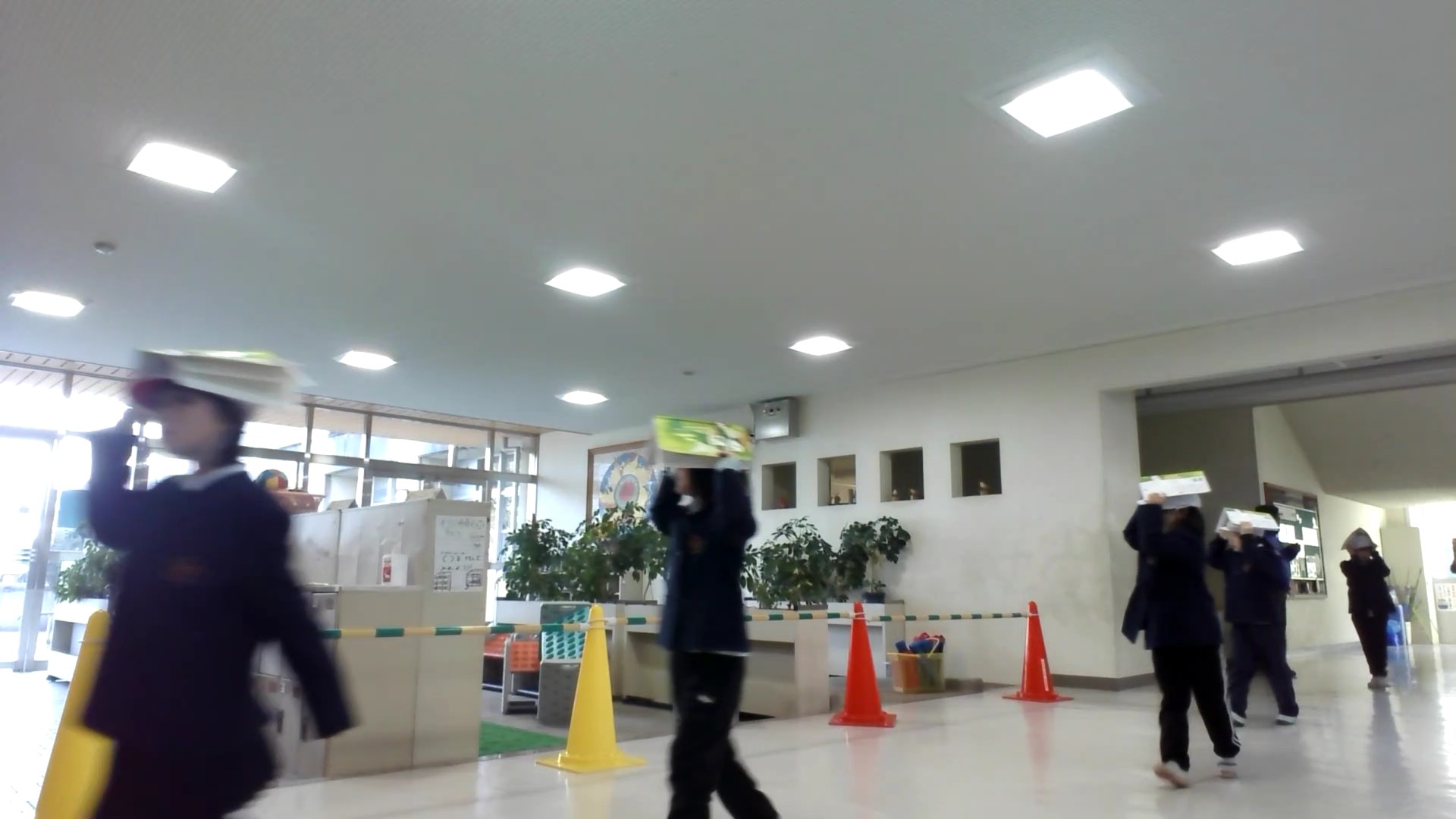 今回の訓練は、地震による障害物を想定し、あえて通路に机や椅子を置いた状態で行いました。2階の児童は職員室を通り抜ける特別ルート、3階の児童は外階段(非常階段)を使用して避難しました。本格的な設定に、全校生が、緊張感をもって取り組むことができました。