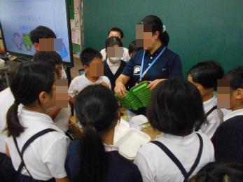 食品トレーを作っているエフピコさんに学校に来ていただき、お話を伺いました。様々な用途で使われている食品トレーがどのようにできているのか、どのくらいリサイクルされているのか等、初めて知って驚くことがたくさんありました。食品トレーを少し割ったり、つまようじで刺せたりするとリサイクルできるものだと知り、自分が持ってきた食品トレーがリサイクルできるのか友達と一緒に調べる姿が見られました。また、納豆の容器やカップ麺の容器などは、汚れがしみ込んでいてとれないため、エフピコさんではリサイクルできないことを知ることができました。エフピコさんのお話を聞いて、一人ひとりが資源を守るために意識して生活することで、地球を守ることに繋がるのだと気付くことができました。