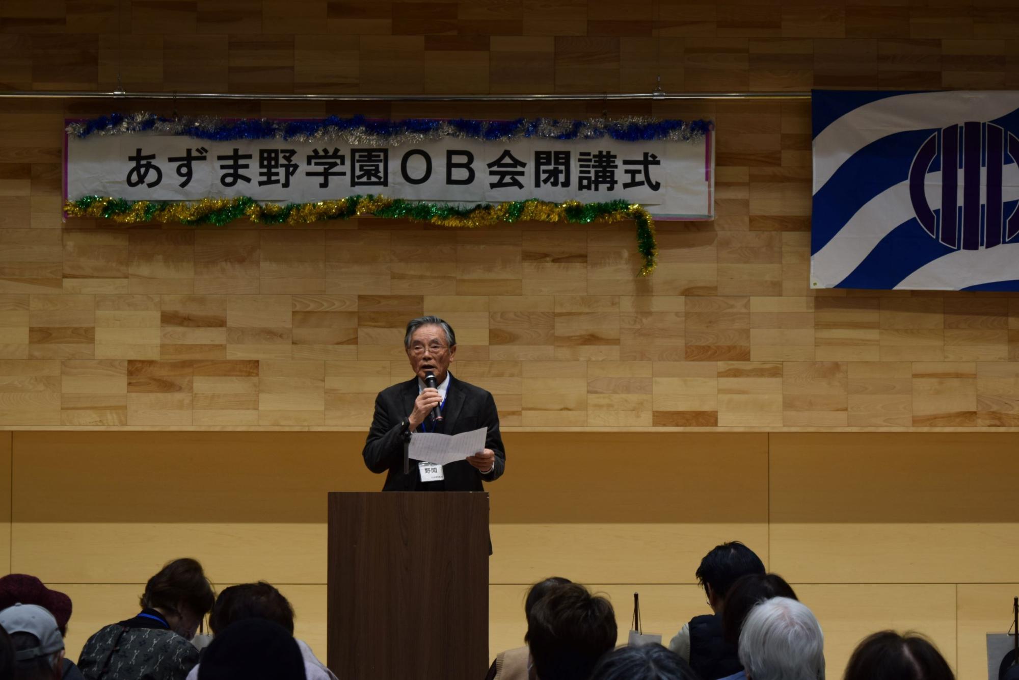 運営委員長の開講挨拶のなかで、会員の平均年齢80.5歳、男性会員57名、女性会員140名というデータが報告されると、驚きと笑いの混じった声が会場に溢れました。学園長からは、「苦手を作らず、いろいろなことに挑戦して豊かな学びの時間を過ごし心を喜ばせ、長生きしましょう」という励ましの祝辞がありました。