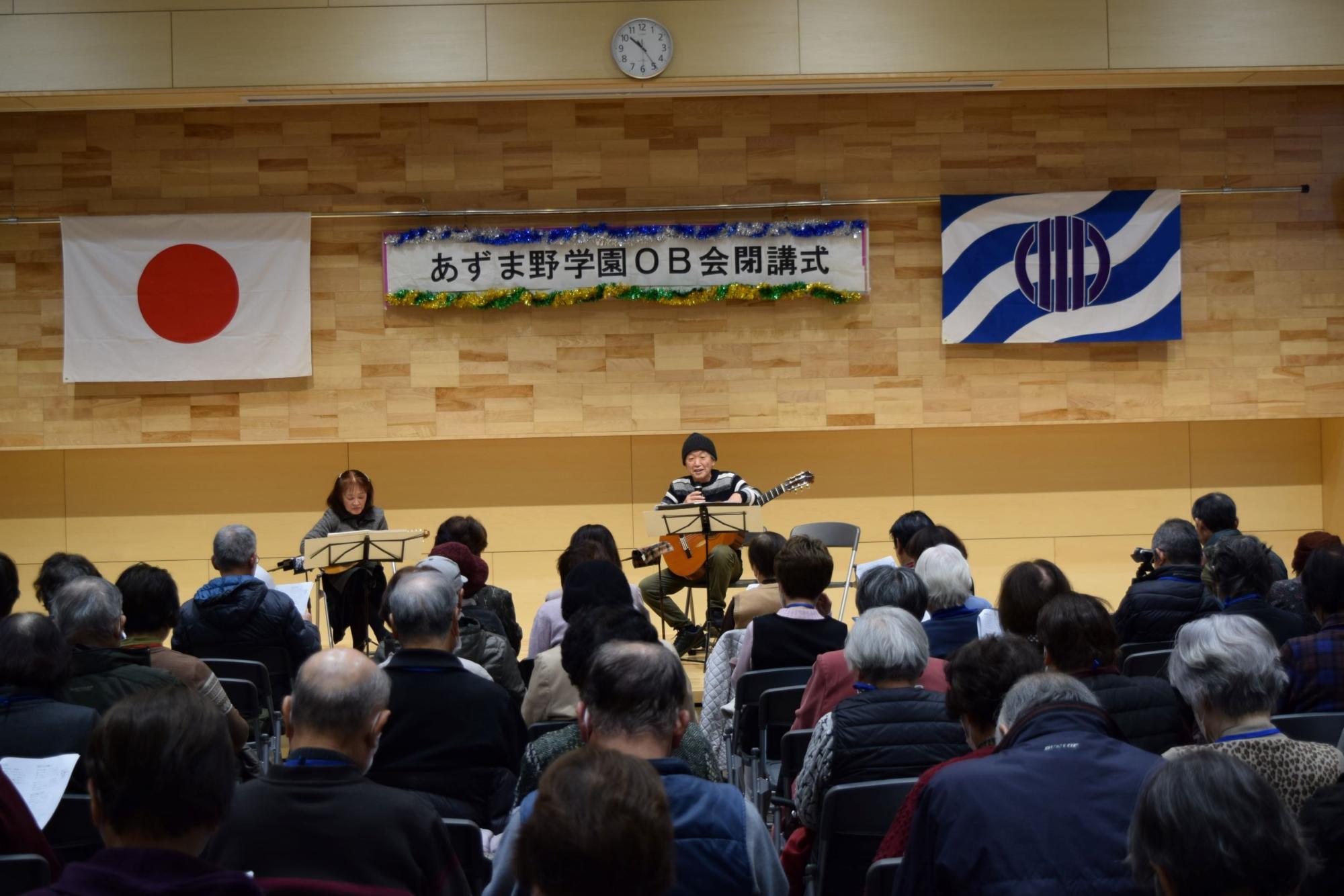 式典のアトラクションとして、今年度の締めくくりにマンドリンとギターのアンサンブルグループ「ら・マロン」の皆さんをお招きしました。美しい演奏に合わせて参加者の皆さんも一緒に歌い、会場は和やかで温かな雰囲気に包まれました。