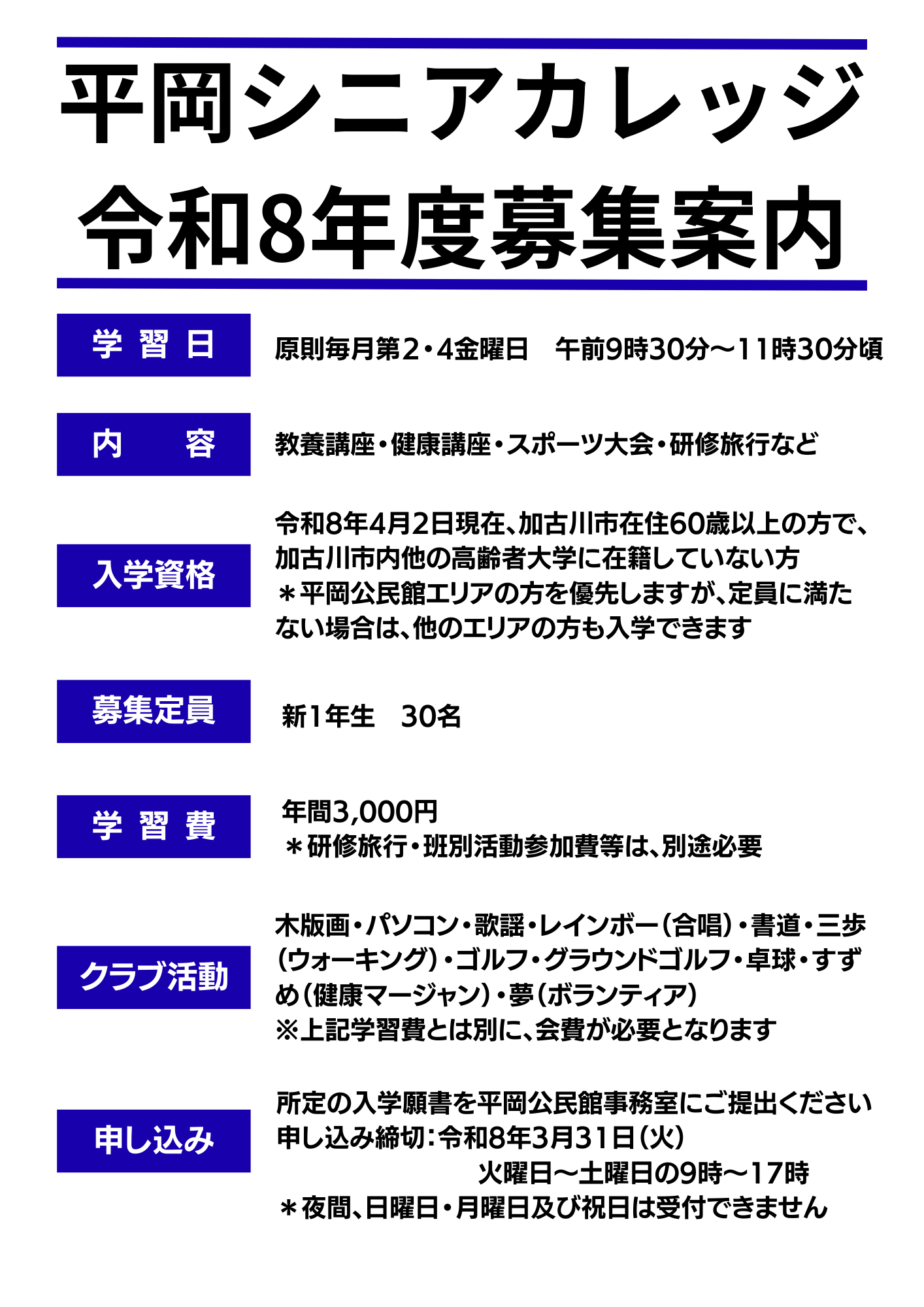 令和8年度 平岡シニアカレッジ 募集要項 (PDFファイル: 695.8KB)