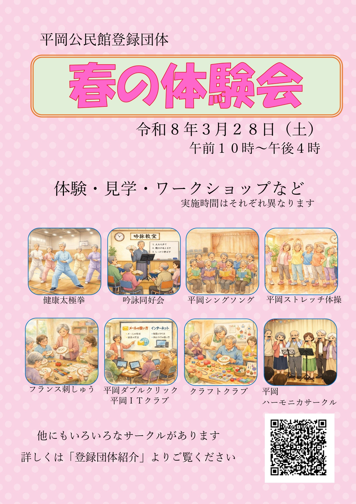 令和8年3月28日(土曜日)に、平岡公民館登録団体「春の体験会」を開催します。