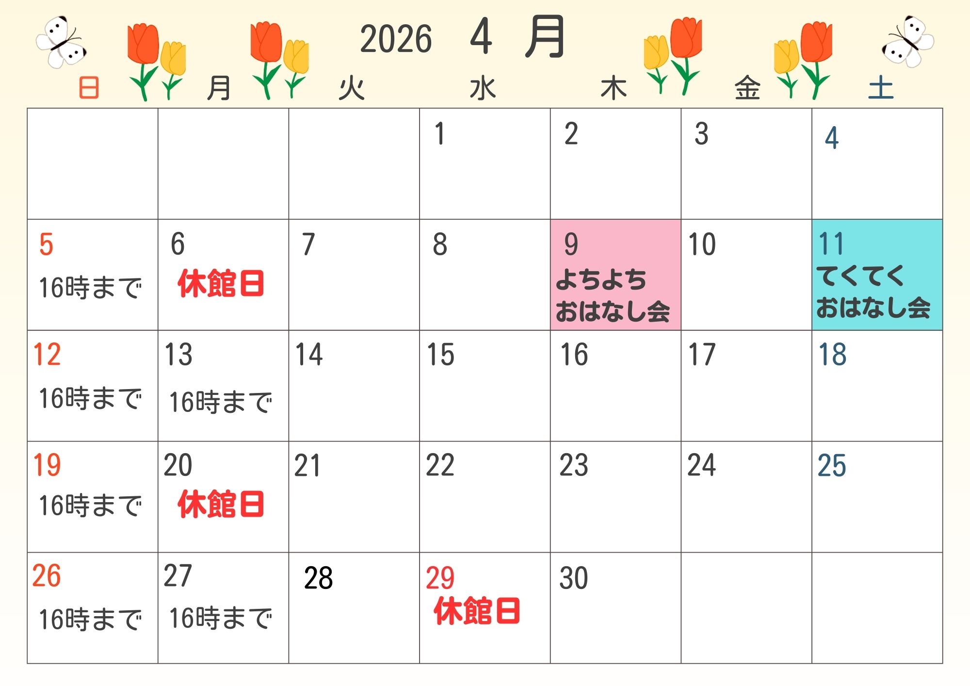 休館日カレンダー 更新日:2026年03月04日 2026 3月休館日カレンダー(JPEG:198.2KB) 2026 4月休館日カレンダー(JPEG:193.5KB) この記事に関するお問い合わせ先 担当:両荘みらい学園学校図書館 地域開放サービス郵便:675-1221住所:兵庫県加古川市平荘町山角725-2電話番号:079-451-5140 みなさまのご意見をお聞かせください このページの内容は分かりやすかったですか。 分かりやすかったふつう分かりにくかった このページは見つけやすかったですか。 見つけやすかったふつう見つけにくかった