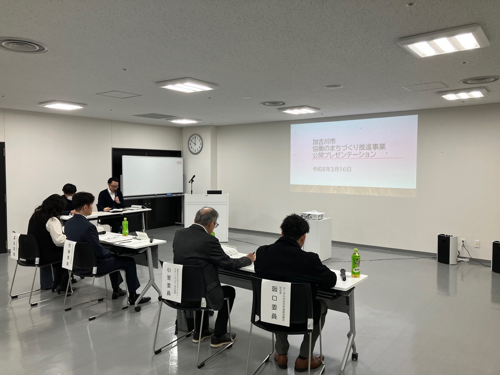 加古川市民交流ひろばで、『協働のまちづくり推進事業』の公開プレゼンテーションおよび提案内容検討会を実施しました。