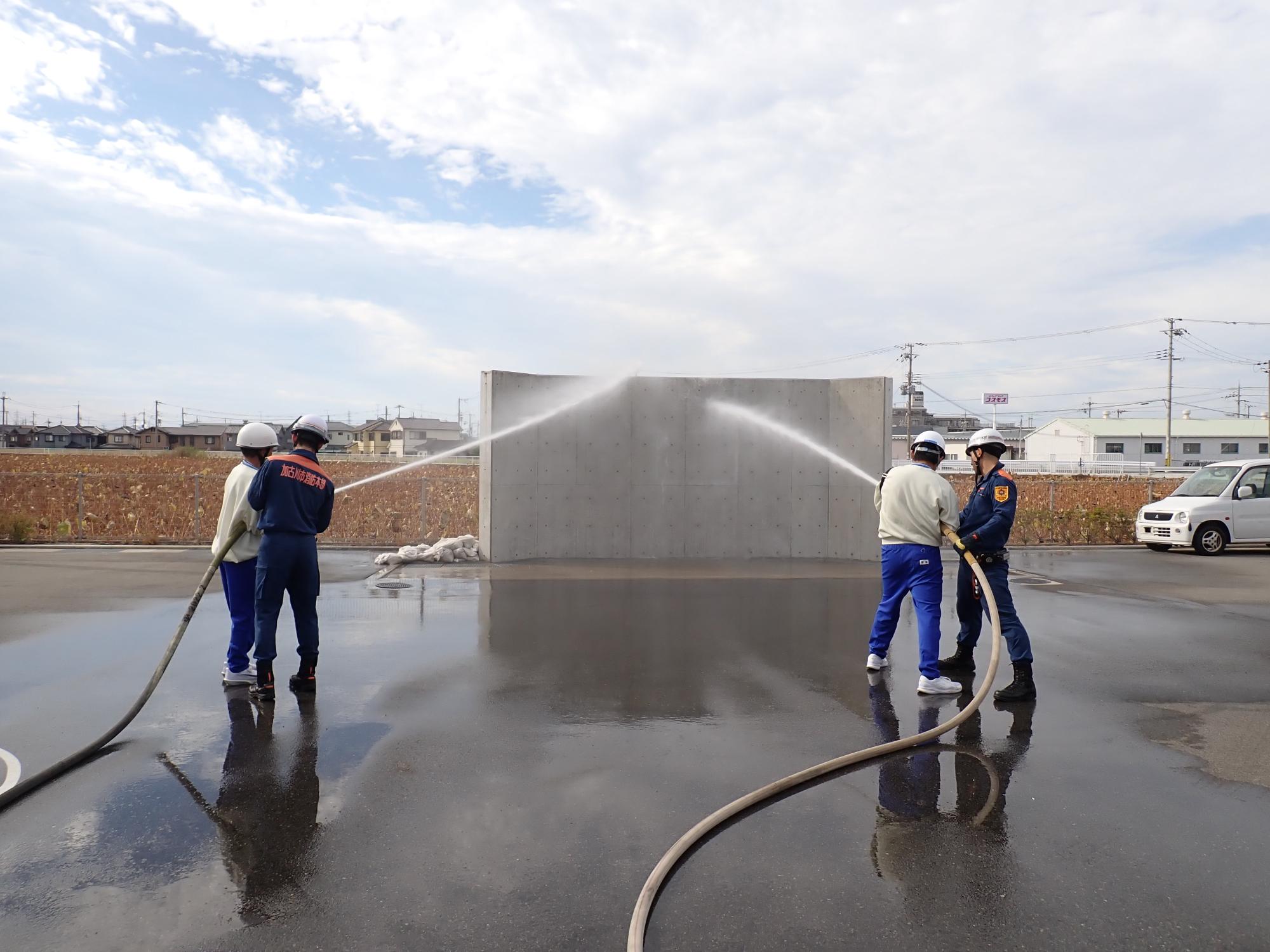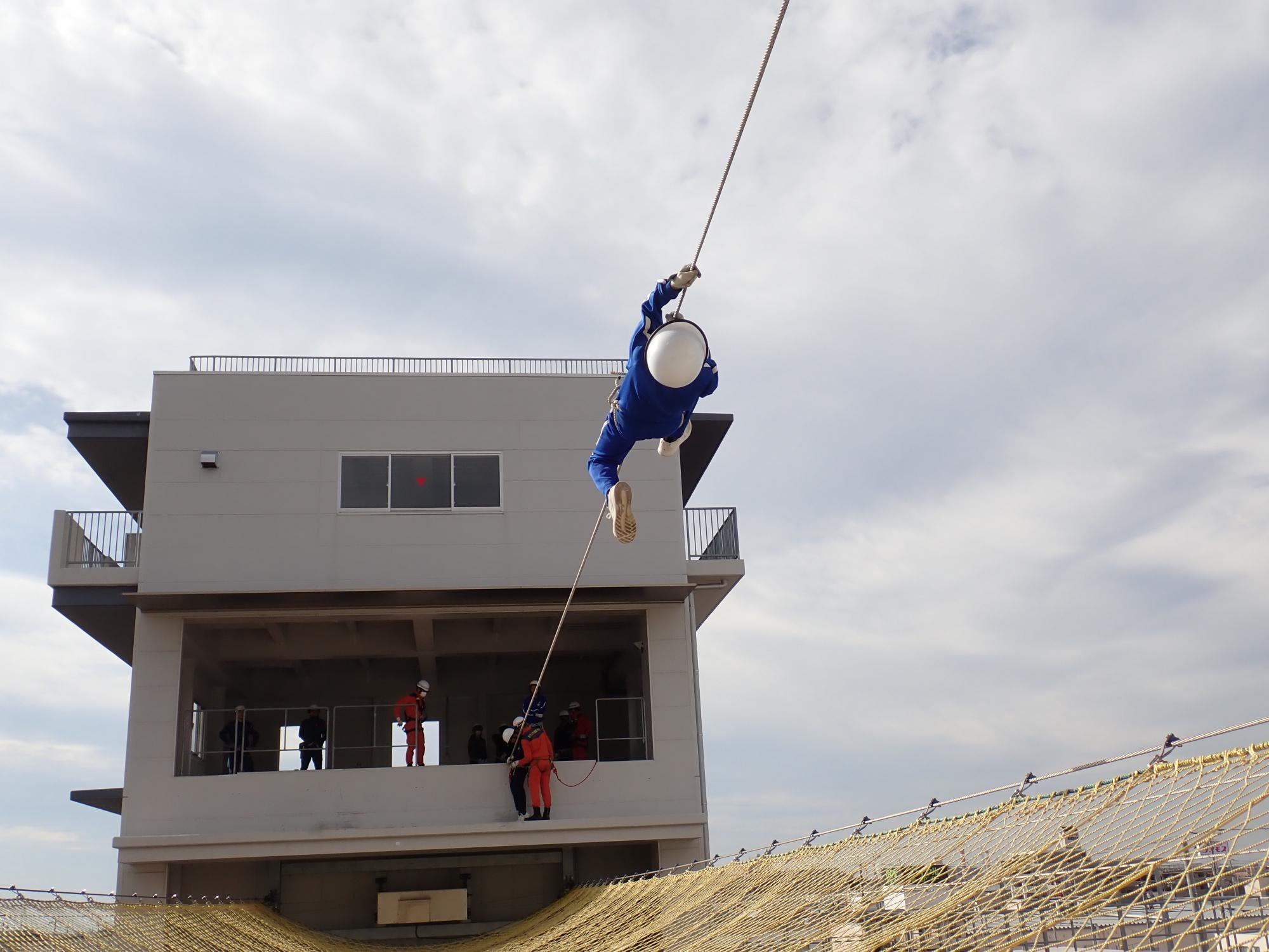 消防署の職業体験として、訓練用のAEDを使用して心肺蘇生法を学んだり、放水訓練や救助訓練を体験しました。